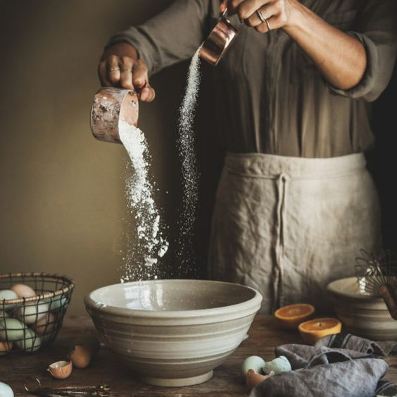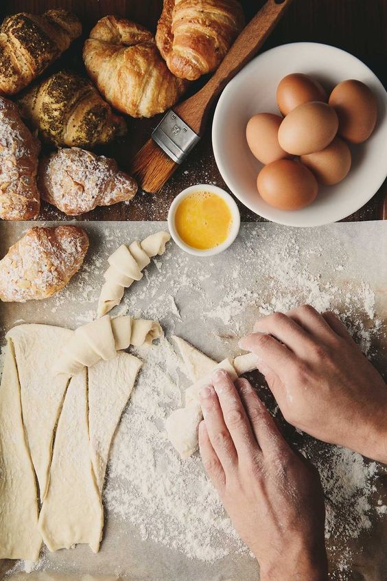 Baking is a method of preparing food that uses dry heat, typically in an oven, but can also be done in hot ashes, or on hot stones. The most common baked item is bread, but many other types of foods can be baked. Heat is gradually transferred "from the surface of cakes, cookies, and pieces of bread to their center, typically conducted at elevated temperatures surpassing 150°C. Baking is a skill or way of cooking food in an oven. Sometimes, though, baking can also be done in hot ashes, or hot stones. It is used for making bread, cakes, pastries, pies, tarts, cookies, and much more. Such foods made by baking are called "baked goods". The ingredients used in baking include flour, water, leavening agents (baker's yeast, baking soda, baking powder), shortening (fats, oils), eggs, milk, and sugars. These are all mixed together to create dough or batter, which is then put into a pan or a sheet and heated. Leavening agents produce gas that becomes trapped in the dough. This makes it rise. Shortening makes doughs more easily workable and the bread that comes out in the end more soft and tender. Egg whites are used to help make a light, airy texture.